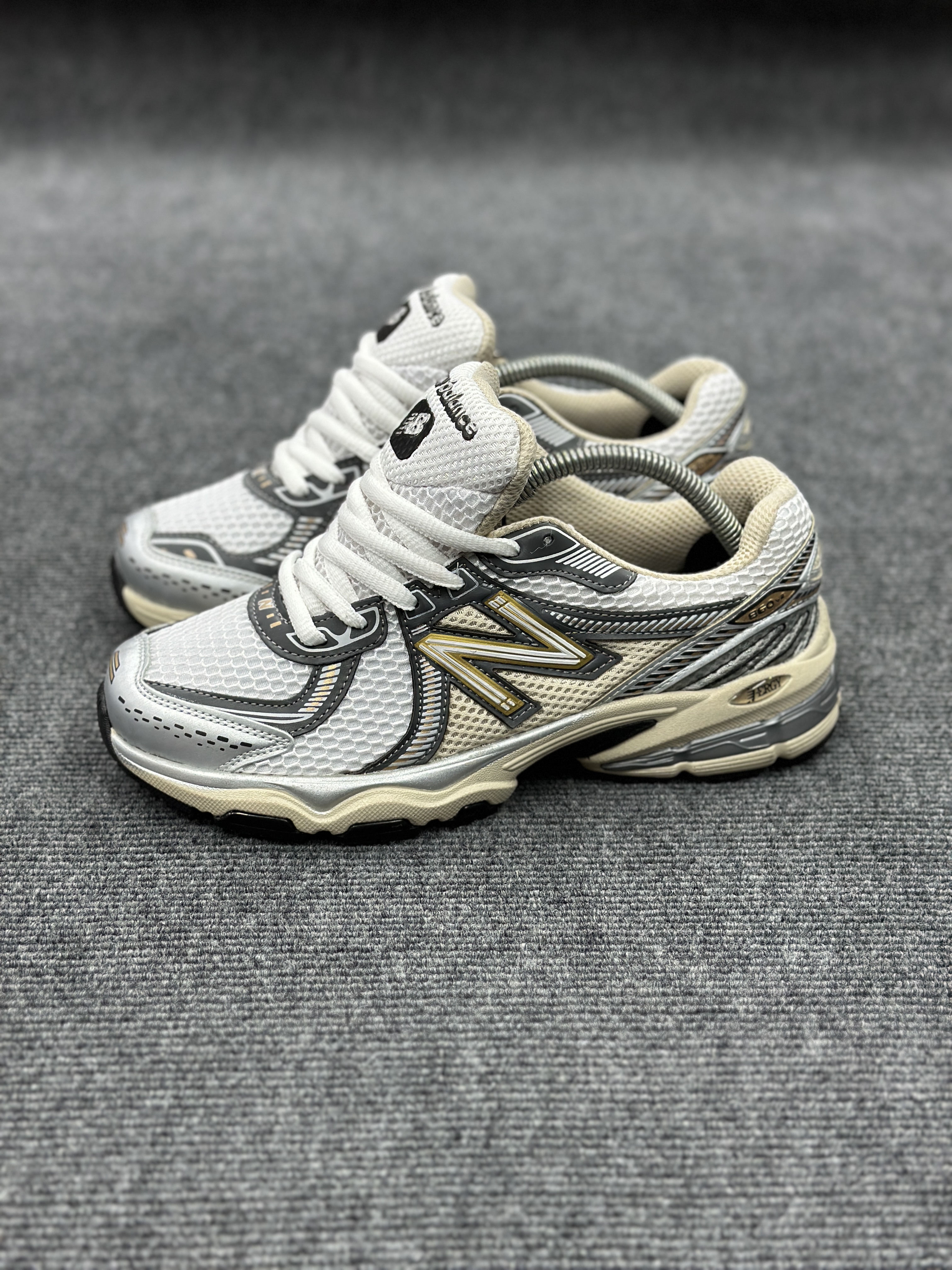 نیوبالانس ۸۶۰ سفید طلایی پرطرفدار و شیک با متریال باکیفیت